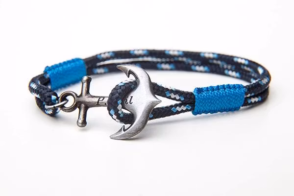 Med en basfärg av mörkblå marinblå och ljusblå kobraknut på varje sida med våra signatur 1-2-1 prickar i en blå-vit-blå layout längs armbandets längd.